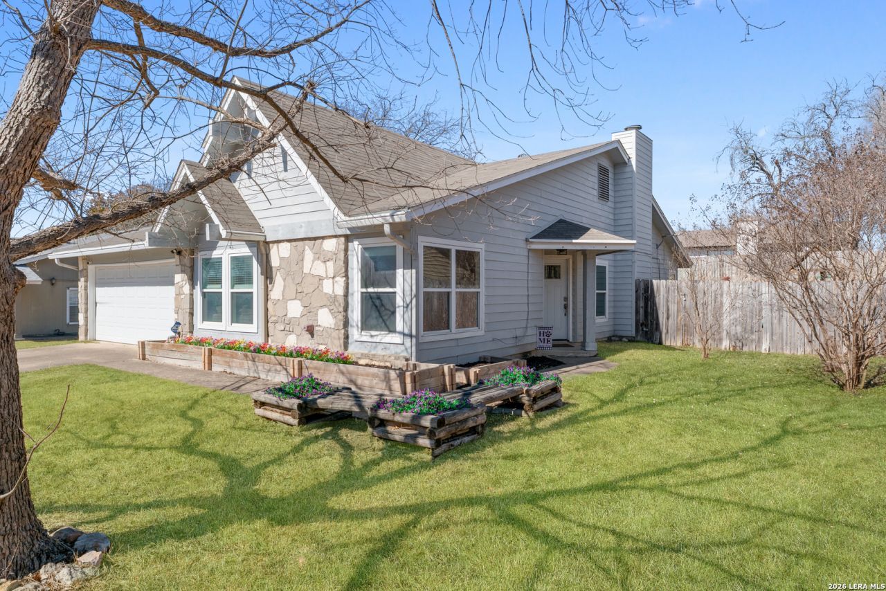 Welcome home to this spacious and beautifully updated San Antonio gem, ideally located in a central and convenient community. This 3-bedroom, 2-bath home offers 1,829 square feet of comfortable living with a layout designed for both everyday ease and entertaining. From the moment you arrive, youll appreciate the charming stone exterior, well-kept yard, and inviting raised garden beds. Inside, the open and airy floor plan features vaulted ceilings, ceramic tile flooring, and a generous living area anchored by a cozy fireplace. The semi-open concept flows seamlessly into the updated kitchen featuring granite countertops, rich cabinetry, a center island with breakfast bar and modern hardware and fixtures throughout. The kitchen is complete with stainless steel appliances, an electric range/oven, built in microwave, stainless steel dishwasher and an undermount sink. The back wall features a stylish sliding barn door, with access to the walk-in pantry and laundry. The spacious primary suite provides a relaxing retreat with a sitting area, ceiling fan, ample closet space and a remodeled ensuite featuring dual vanities and a sleek walk-in shower. Two additional bedrooms are well sized and offer great closet space. Step outside to a fully enclosed backyard perfect for gatherings, featuring a concrete patio, fire pit seating area, and plenty of green space perfect for entertaining or unwinding after a long day. Additional perks include a two-car garage, interior laundry and convenient location close to shopping, dining, and more.