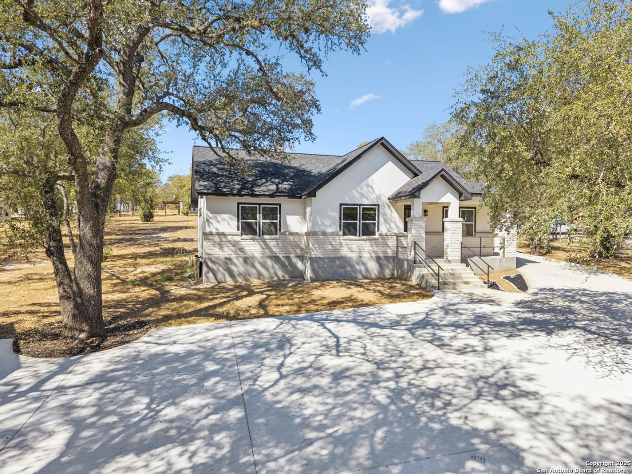 Set behind a private gate on 2.5 fully fenced acres, this sprawling, partially wooded property offers the perfect blend of space, privacy, and modern design just minutes from San Antonio. Inside, this like-new modern farmhouse impresses with high ceilings, exposed beams, and an abundance of natural light. The open-concept layout is finished with wood-look tile throughout and includes 3 spacious bedrooms, 2.5 baths, and large, inviting living areas. The kitchen stands out with custom cabinetry, granite countertops, and a generous island ideal for entertaining. The property also features a massive workshop for projects or storage, a water softener, and multiple covered parking options-an attached 1-car carport that doubles as a covered patio, plus a detached 3-car carport with plenty of space for guests, equipment, or outdoor living. Located just minutes from I-35 and a short drive to major employers, Lackland AFB, and shopping and dining in San Antonio, this property delivers the best of both worlds-the tranquility of wide-open land with the convenience of quick city access.