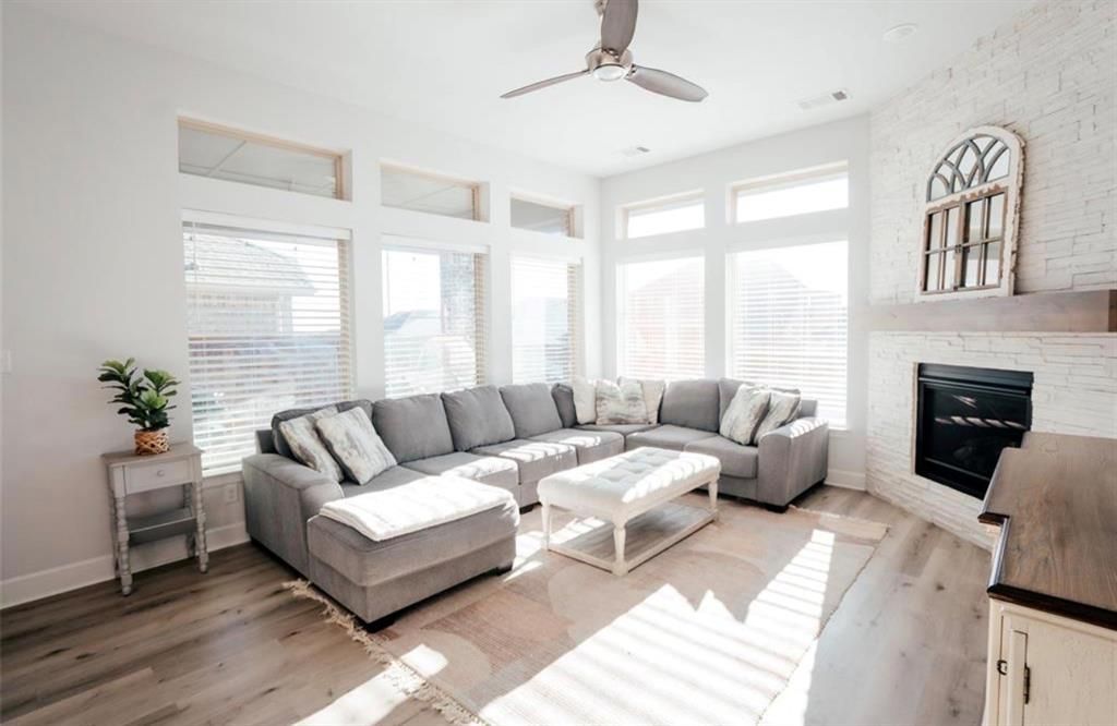 Tucked inside the highly sought-after Ventana community in Benbrook Fort Worth, Texas, this 4-bedroom, 3-bathroom home checks virtually every box for modern family living and then keeps going. Step inside to an open-concept living space anchored by a custom gas fireplace, the kind that makes a room feel intentional rather than just large. The gourmet kitchen is built for people who actually cook: gas stovetop, premium appliances, and counter space that won't have you playing Tetris with your cutting board. A dedicated home office keeps work-from-home life sane, while an expansive loft and private media room give everyone in the household their own escape hatch. The primary suite earns the word luxurious with generous natural light, walk-in closet space, and a spa-style bathroom featuring both a soaking garden tub and a glass-enclosed shower. Three additional bedrooms and two full baths round out a floor plan that actually functions for real families. Outside, a covered front porch and back patio make the most of that classic Texas outdoor lifestyle, rain or shine. The Ventana community itself is a legitimate selling point: two resort-style pools, a 2,500 sq ft shade pavilion, walking trails, playgrounds, BBQ areas, two dog parks, and an event lawn with monthly programming. Top it off with access to a newly recognized, high-performing Rolling Hills Elementary and this one is genuinely hard to pass up.