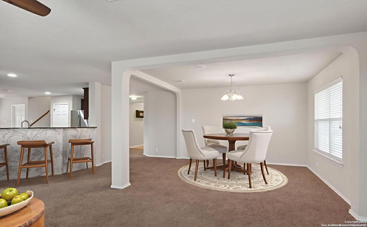 Spanning over 2,800 square feet, this spacious home showcases a well planned layout with an open, airy feel designed for comfortable everyday living and easy entertaining. Natural flow connects the main living areas, creating an inviting environment for gatherings both large and small. At the heart of the home, the kitchen is both stylish and practical, featuring a substantial granite island, abundant cabinetry, stainless steel appliances, a gas range, and ample prep space perfect for cooking, serving, and conversation. Upstairs, an oversized loft offers exceptional versatility and can easily function as a game room, media retreat, home office, sewing space, or additional living area. The private primary suite provides a peaceful escape with a walk-in closet and en-suite bath. A standout feature: every bedroom includes a walk-in closet, an uncommon and highly desirable benefit. Step outside to enjoy the covered patio and generous backyard with open green space behind, creating an ideal backdrop for weekend barbecues or relaxing evenings outdoors. Conveniently situated near major highways, shopping, dining, and neighborhood amenities, this property blends space, comfort, and accessibility in a community youll be proud of. Schedule your private showing today to experience it in person!