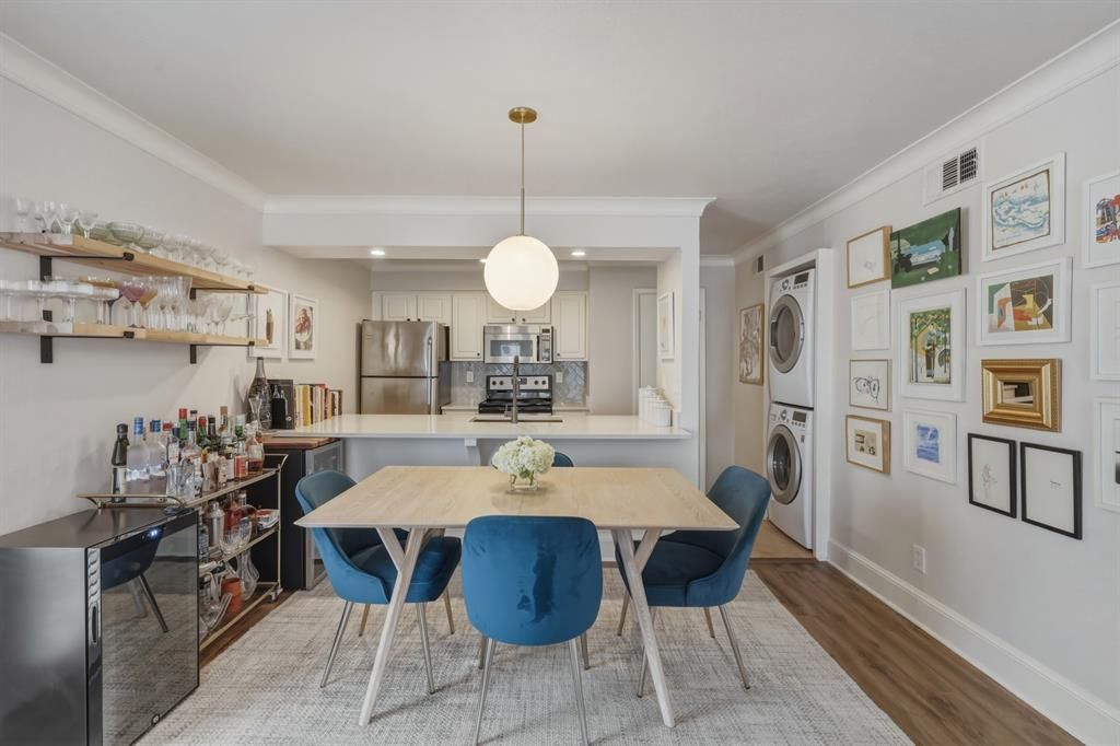 This charming, second story condo has been tastefully updated & is move-in ready! Complete with two ample-sized bedrooms & two full bathrooms, it's perfect for your next home or investment property. Walk into an open concept floorplan with a dining space & vast living room overlooking a coveted covered balcony. The kitchen includes stainless steel appliances, granite countertops, & updated tile backsplash. Additional highlights include a stackable Washer-Dryer area, updated flooring, ample storage, new windows in the bedrooms, new lighting fixtures & ceiling fans, & fresh paint throughout! Enjoy a resort-style pool & outdoor cabanas within this gated community. Unit comes with two assigned covered parking spaces. Enjoy convenient access to 75, SMU, Central Market, White Rock Bike Trail, & some of Dallas' top restaurants & retail!