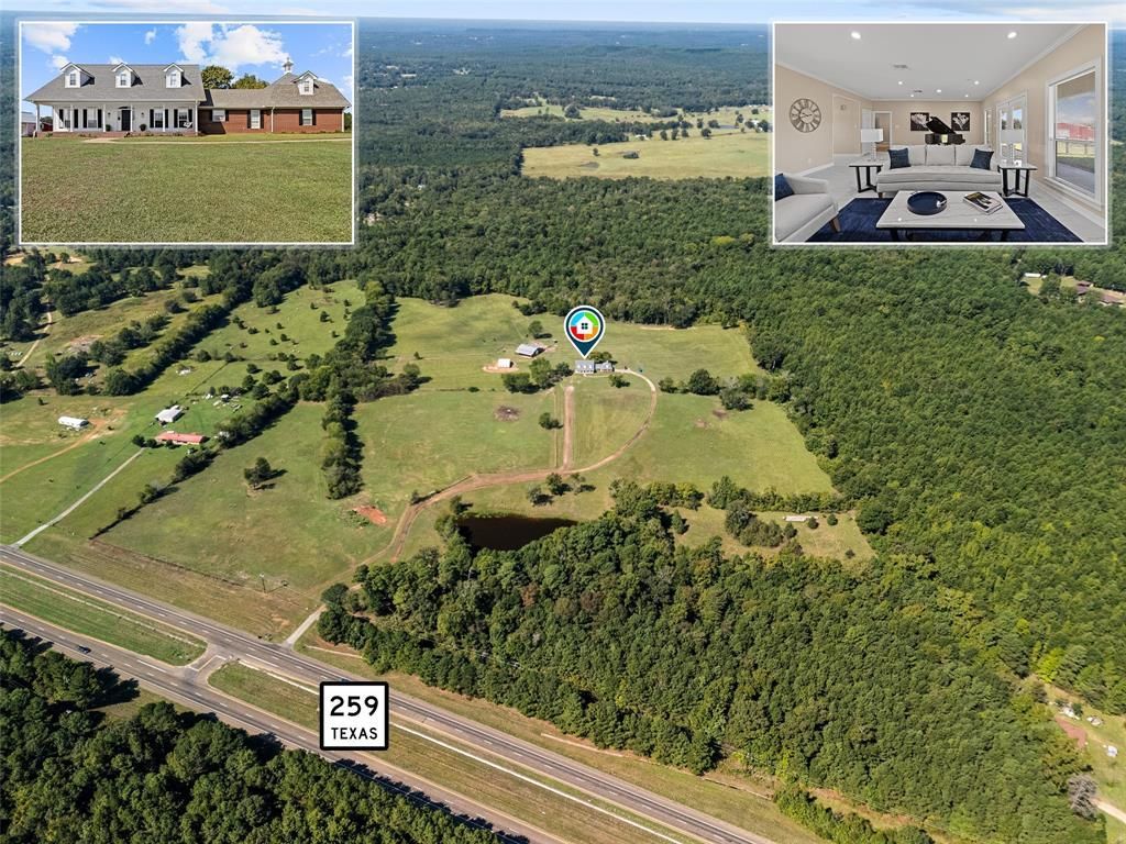 How you've dreamed of having it ALL! Beautiful totally updated & spacious home, your horses grazing in view, overlooking your pond on beautiful 64 acres with much improved pasture...well, dream no further. Just north of Longview is your dream. Home was almost totally remodeled in 2023. Beautiful flooring throughout the main floor with windows across the back to the living room with WBFP, formal dining, & gorgeous lighting. The kitchen was redone with all brand new high end counters, beautiful custom cabinetry, custom built breakfast nook, higher end appliances, top of the line fixtures, beautiful lighting, pantry & more. Next. is the large utility room with mini office and room for an upright freezer. Then your family room with the same theme that flows throughout the main floor. Built-ins custom built for lots of storage extend one entire wall. Back through the living room area is the very spacious main suite with large bath and large walk-in closet, separate shower and large soaking tub. Upstairs are 2 oversized 2nd and 3rd bedroom(big enough for a tent or dollhouse) with full bath with tub and shower combination. Also upstairs is a separate room (approx.64 sq. ft) that just need a little finishing for storage or craft room, etc. Out front enjoy that morning coffee looking over your beautiful meadows or that sparkling pond...or right out the back door is another morning coffee spot for watching your horses munching on the beautiful native grasses. Don't forget the deck for those family cook-outs. There are two barns. One barn is new new as of 9.24. Both barns have electricity and water, fans, lighting, space for feed, grooming and storage. There are 4 separate grazing pastures. Plenty of trees for animal shade in each pasture. Seller had 96 round bales from first cutting. There are gates from each pasture that leads to the barns so animals have easy access to feeding times or for lots of hugs and petting. Any direction you looks is truly picturesque.