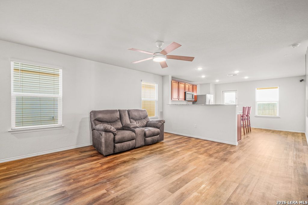 This modern 2021-built rental offers 3 bedrooms, 2 baths, and a full 2 car garage with epoxy flooring. Inside, youll find granite countertops, luxury vinyl plank floors, and a covered backyard patio with a privacy fence. The backyard doesnt directly back onto neighbors, ensuring more privacy. An owned water softener is included, along with a washer, dryer, and refrigerator for a smooth move-in. Conveniently located near Fort Sam Houston, Randolph Air Force Base, and right across from Amazons hub, youre also just 6-7 minutes from the Frost Bank Center and about 10 minutes from downtown San Antonio. This home offers comfort, privacy, and a prime location. Schedule your tour today!