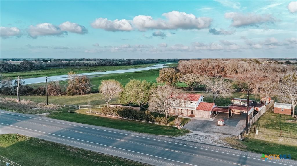 Just finished with a COMPLETE inside painting and all NEW carpets upstairs and downstairs bedrooms. Two story, 1 1/2 bath lake front home, 2,120 square feet sitting on 1/3 acre. The property behind the house is Lavaca Navidad River Authority (LNRA) owned and mowed regularly. Water well - Septic, fully fenced, pet ready. This home is storm ready with a seamless Metal roof, Hurricane Impact Windows for every window of the house. Two sheds that also have storm-protected windows. Emergency Generator that plugs into the house and powers essentials. Fireplace keeps it warm in Winter with central heat. Ceiling fans in every room keeps it cool in Summer with Central A/C. All outdoor plumbing is triple freeze protected. Two car/ One RV carport, Covered work area with storage barn and one Man Cave / BBQ area. NOTE: Update on Lake Texana water being so low. Apparently, there is damage to the dam on FM 3131 and that is why the water level is so low. Repairs are underway to the dam and the roadway 3131 is closed. When the repair is fixed water levels should resume back to normal.