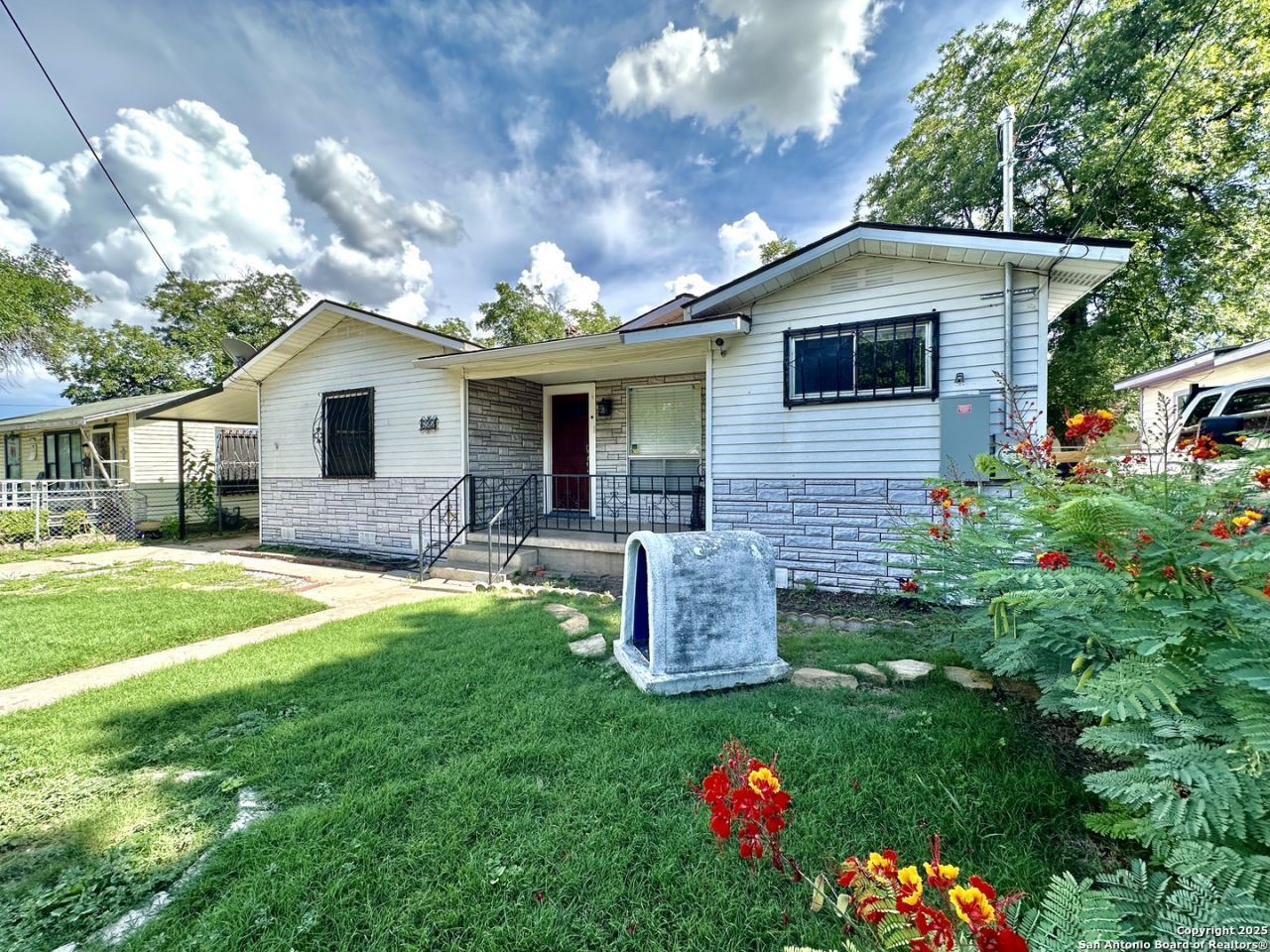 NEW A/C as of 10/2025. Old San Antonio charm meets updated modern-day luxury and makes this property a must see! Hard wood floors and a luxurious kitchen that includes granite countertops, stainless steel appliance and a work station just off the kitchen, just add a stool and your laptop. Beautiful French doors are the entryway to a 2nd and very spacious living area. Home includes two living areas which allow for plenty of entertaining and a large dining area to accommodate all your holiday guests comfortably. Theres central A/C in this updated beauty and a completely upgraded bathroom with a luxurious walk-in shower. Plenty of space in the backyard for bbqs and lots of shade for everyone to enjoy time outside during those hot summer days. Tons of parking space for families with multiple cars or to accommodate guests including a drive way, a carport and a one car garage. Brand new A/C system paves the way for cool summers during those hot Texas summer days.