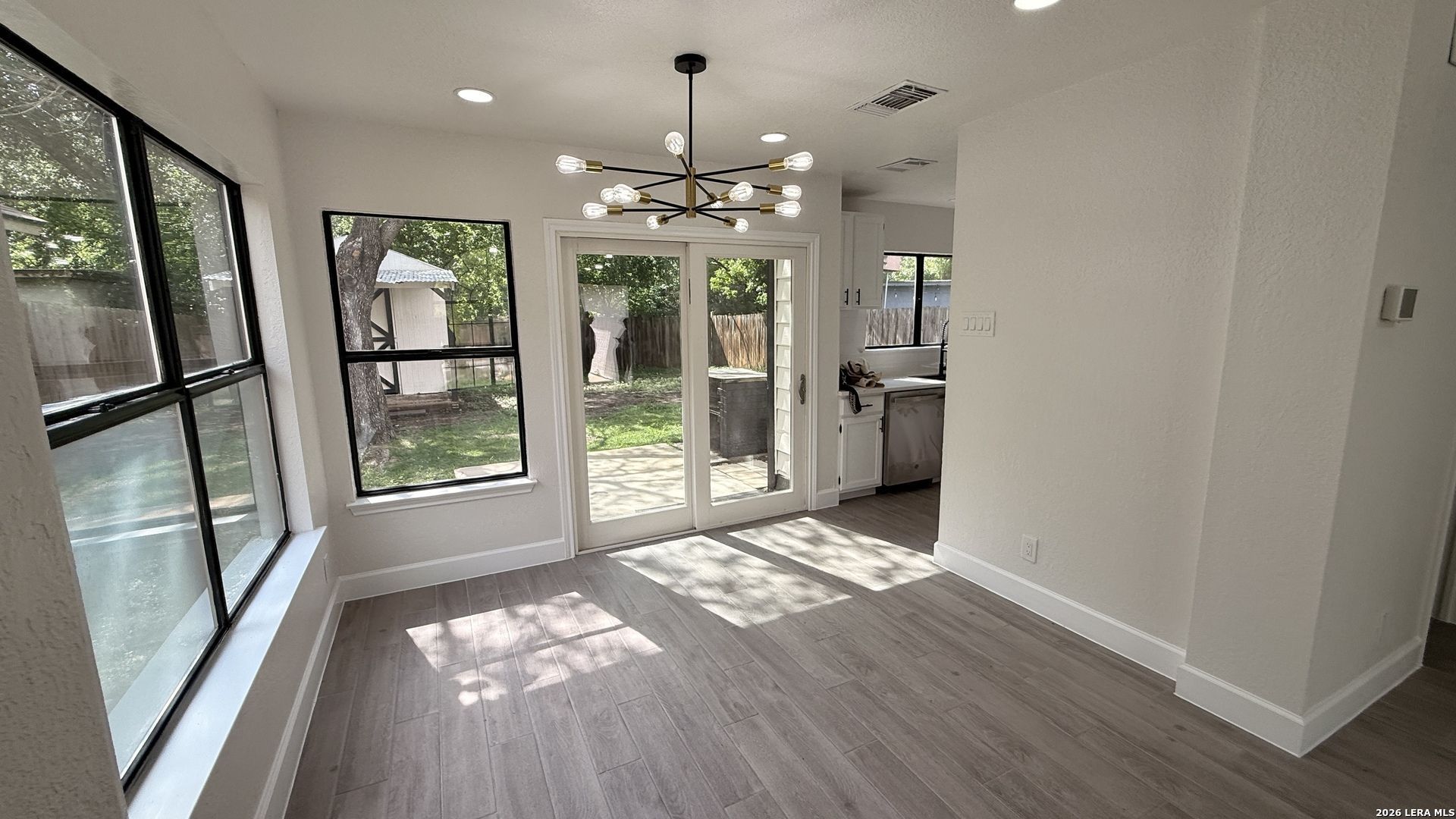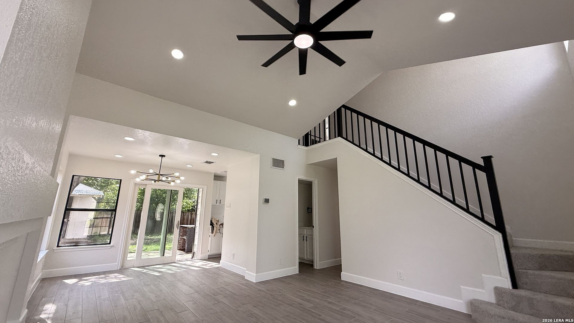 Completely remodeled rental home in San Antonios 78250 area. This home has a fresh, modern feel from the moment you arrive, with its black-and-white exterior, updated flooring, high ceilings, and bright living spaces. Inside, the living and dining areas feel open and comfortable, with plenty of natural light, recessed lighting, and a fireplace that adds character to the space. The kitchen has been fully updated with white cabinetry, sleek countertops, subway tile backsplash, stainless steel appliances, black hardware, and a large window overlooking the backyard. Sliding doors open to the patio and backyard, making it easy to enjoy a little outdoor space right from the main living area. The home also includes a two-car garage, updated finishes throughout, and a convenient location within walking distance of Zachry Middle School and Lloyd M. Knowlton Elementary. You are also just a short drive from Alamo Ranch, UTSA, Northwest Vista College, shopping, dining, and everyday services. Move-in ready, nicely updated, and easy to enjoy.