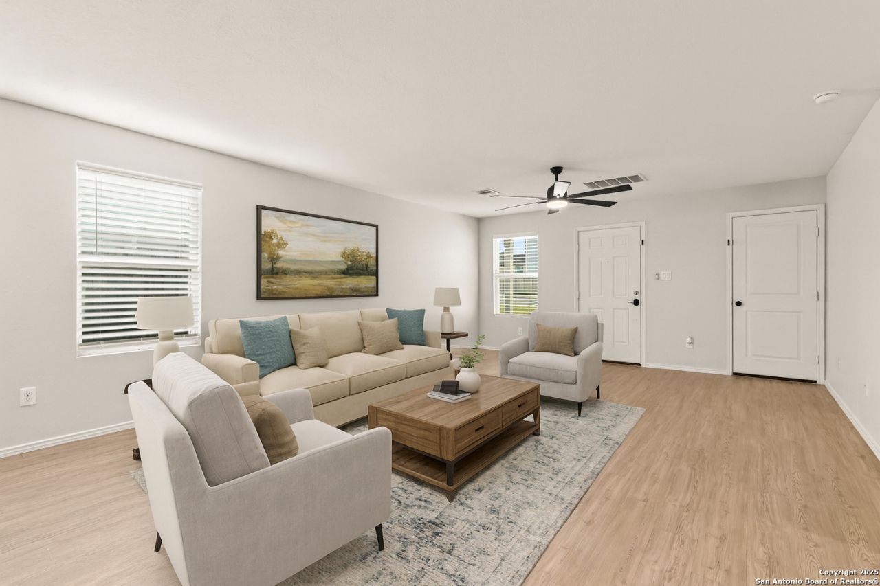 This beautiful 3-bedroom, 2-bath, 2-car garage home in the Willow View subdivision offers the perfect blend of style, space, and functionality. Featuring an open concept floorplan, ideal for both entertaining and everyday living. Bright, airy living area that flows seamlessly into the dining space and stunning kitchen. The kitchen is equipped with granite countertops and stainless steel appliances, making meal prep and entertaining effortless. Luxury vinyl plank flooring throughout the whole house. The primary suite boasts a private bath and walk-in closet, providing a serene retreat. Outside, the backyard offers ample space for relaxation or hosting gatherings. Recent updates include a new fence, fans, dog run and upgraded fixtures. The roof is only 2-years old! The HOA for Willow View is creating a park to accompany the community pond to support community get events. Move-in ready and conveniently located in the heart of Converse, this home is just minutes from Randolph Air Force Base, with quick access to major highways, shopping, and schools. Perfect for first-time buyers, those downsizing, or anyone seeking a home in a prime location, this residence combines modern comforts with a convenient lifestyle.
