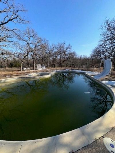 Needs TLC! 6.2 ACRES! FIXER UPPER with Great Potential! Privacy, Trees, Deer, Pool, No Restrictions! Looking to Homestead - this is it! Escape the hustle and bustle! No known restrictions. Bring your ideas and fixer upper skills and gain equity and a wonderful homestead! Lower taxes than most properties. Outside the City Limits and Private! Tons of trees, deer and wildlife. Open flowing floorplan with 2 Bedrooms down and 2 bedrooms up. There is also a media room on one side of the home. The downstairs HVAC unit will need to be replaced. The upstairs HVAC unit is a few years old and operational. The garage has been converted and would be a great 2nd family area if opened up, or make into bedrooms or office, or make a parent or teen retreat. You can always reconvert the garage. The small white house is for storage but would make a great workshop. Inground Pool and Spa. The heater for the spa does not work. It ran on propane. The heater and propane tank have been removed. The treehouse was an old deer blind, that has been converted into a treehouse with floors. PLEASE be Cautious if your climb up it. CLIMB at your own risk. This property is perfect for a larger or growing family. You can also build a shop at the back, an in law home, or have a horse. So many possibilities with this wonderful property. It does back up to a creek that is usually dry. No Flooding concerns at all. 2 Friendly Dogs on Property, older and will not bother you. Ms. Red and Smiley-that will follow you around and smile. Buyer and BA to verify any information needed during option period. Info given but not guaranteed. This is an AS IS Sale. Come out and take look. The sellers will have all things out of the home before closing. City of Springtown, Bridgeport ISD, also very close to Paradise Texas, you could check into school transfers.