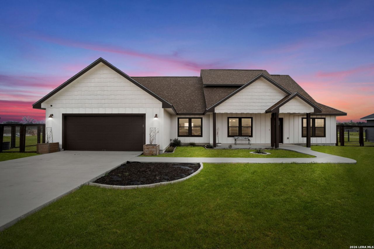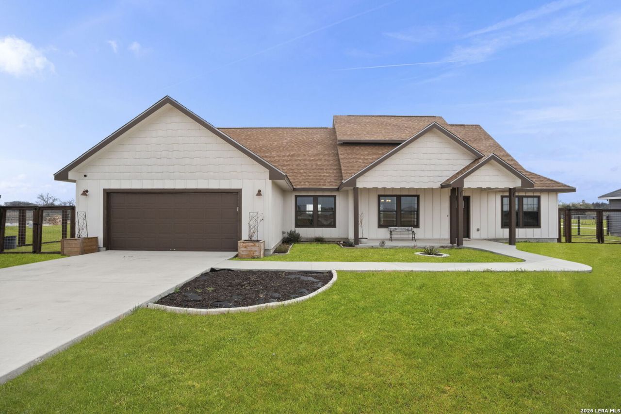 Country living at its finest! Situated on .79 acres backing to a peaceful greenbelt, this charming farmhouse-style home offers wide open spaces and room to breathe. Featuring 4 bedrooms and 2 bathrooms, the open-concept floorplan is perfect for everyday living and entertaining, with luxury vinyl flooring throughout the main level and a spacious living area that flows seamlessly into the kitchen complete with granite countertops and custom cabinetry. The main level offers 3 bedrooms, including a private primary suite with a walk-in shower and generous walk-in closets. Upstairs, the flexible space can serve as an additional bedroom, game room, or playroom and features an open balcony overlooking the beautiful countryside. Step outside to enjoy a fully fenced backyard with a fire pit and raised garden beds ready for planting - ideal for relaxing evenings or weekend gatherings. Conveniently located within the highly sought-after Navarro ISD, this property blends country charm with everyday comfort.
