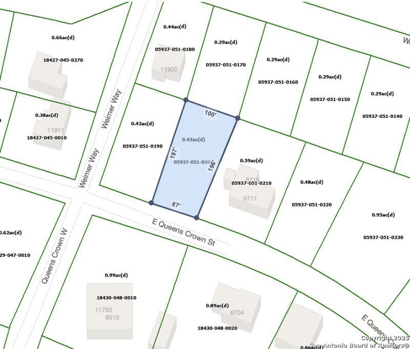 Wake up to breathtaking views every morning and relax in your private oasis every evening.Welcome to 6707 Queens Crown in Live Oak, TX - an exceptional opportunity to own a 0.43-acre corner lot in the desirable Robards subdivision, located in the dynamic San Antonio region. With 100 feet of frontage and partially cleared land, this sloping property is a canvas for your dream home. Surrounded by natural beauty, including a few mature trees, the lot offers a serene residential setting without the restrictions