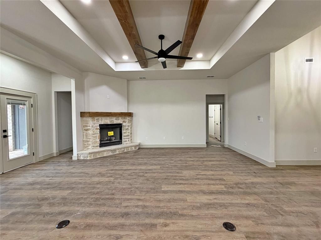 4-bedroom home • 2-bath layout • Quartz countertops • Stainless steel appliances • Wood-burning fireplace • Large kitchen island • Privacy fence • Community pool, dog park & trailsThis Elm Creek at Wylie home features a 4-bedroom, 2-bath floor plan with open-concept living designed for easy daily use and entertaining. Tile flooring runs through the main areas, with carpet in the bedrooms for added comfort. The kitchen offers a large one-level island, quartz countertops, stainless steel appliances, and ample cabinet space, while the living area is anchored by a wood-burning fireplace. Exterior highlights include full landscaping, a front flowerbed, sprinkler system, and a 6-foot wood privacy fence around the backyard. Located in a master-planned community with a pool, dog park, and hiking and biking trails, this Texas Pride Homes design brings together practical features and neighborhood amenities in south Abilene. Estimated completion September 2026