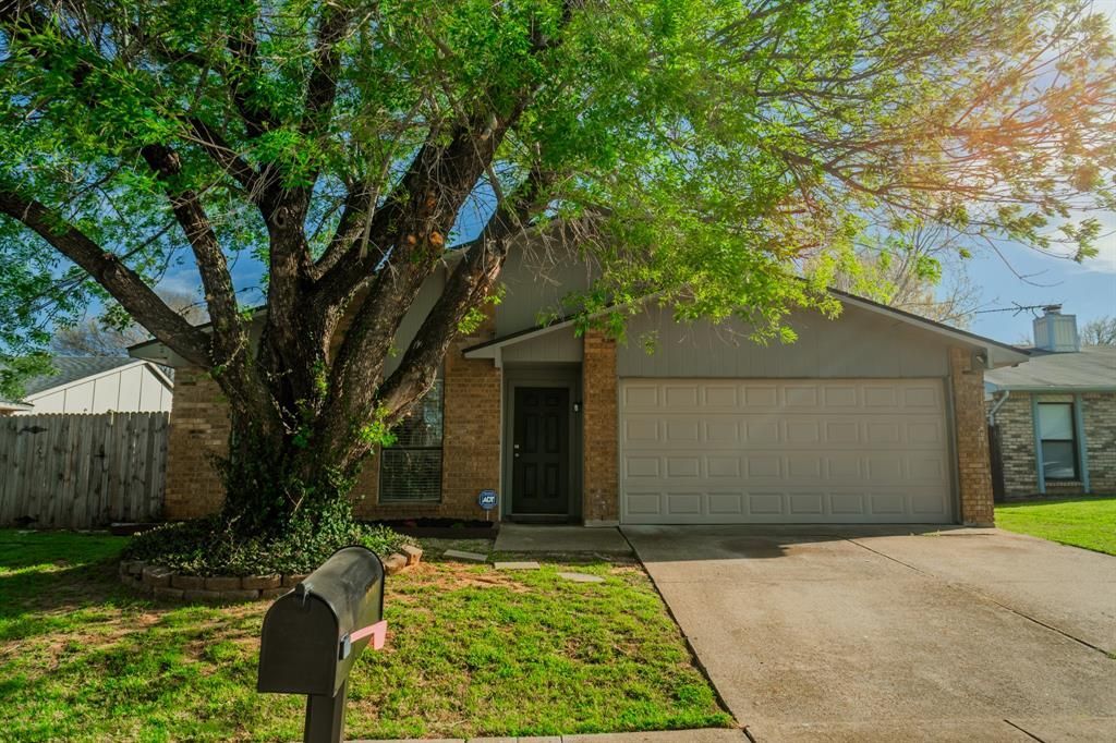 Tucked away just moments from Lake Arlington, this home is not only in a convenient location, but ready to go for its new owner. The spacious living and dining area is anchored by a cozy brick fireplace with a raised hearth and mantle, making it an ideal spot to gather or unwind. Large windows allow natural light to pour in, enhancing the open feel of the main dining and living space. The kitchen offers great functionality with ample cabinetry, generous counter space, and a convenient pass-through opening to the living area, perfect for entertaining or staying connected while cooking and dining. This well taken care of home has new carpet in all the bedrooms, updated perimeter privacy wood fence, and a custom firepit area to enjoy in the evenings. Out the French doors from the kitchen, the turfed side patio is great for grilling out or letting the kids play. This yard is unexpectedly bigger than you'd imagine for a home in town and comes with an 8x8 storage shed. The two-car garage has built in cabinets, workspace, and a new garage door with opener. Roof was recently replaced in November of 2025.