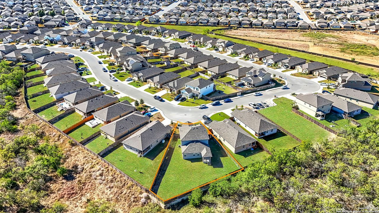 OPEN HOUSE: 02/15/2026 from 3:00 PM to 5:00 PM. Welcome to 6812 Orff Pt, a stunning 5-bedroom, 2.5-bath home nestled in the desirable Whisper Falls community. Built in 2022 by DR Horton, this 2,522 sq ft two-story beauty sits on an expansive 0.224-acre lot with no rear neighbors and lush green space behind-perfect for privacy and peaceful views. Located just minutes from Lackland AFB and NSA Texas, this home offers unbeatable convenience for military and commuters alike. Step inside to discover an open floor plan with a spacious island kitchen featuring granite countertops, gas cooking, stainless steel appliances, and a walk-in pantry. The large dining area can double as a home office, gym, or playroom-tailored to your lifestyle. The downstairs primary suite includes a generous walk-in closet and a luxurious bath with double vanities, a garden tub, and a separate shower. Upstairs, youll find four additional bedrooms, a full bath, and an oversized loft thats ideal as a second living room, media space, or homework zone. One of the secondary bedrooms is smaller and would be perfect as a game room, craft space, or home office. Throughout the home, youll enjoy ample storage, a dedicated laundry room, and thoughtful upgrades like vinyl flooring, ceiling fans, and a covered back patio with deck for outdoor entertaining. Community amenities include a pool, clubhouse, jogging trails, park, basketball court, and more. Zoned to highly-rated Medina Valley ISD with schools just minutes away. Whether youre upsizing or relocating, this home has it all-style, space, and location!