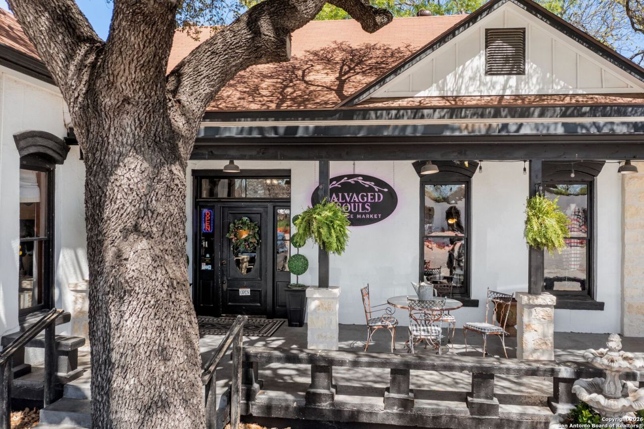 Great opportunity to own a piece of Hill Country history. This charming former estate home, located in the heart of Comfort, Texas, has served many purposes throughout its lifetime. Originally built as a residence by one of Comforts founding families, the property later transitioned into professional offices, housed a small technology company, operated as a restaurant, and now functions as an elegant home decor retail shop. The 3,279 square-foot main building has been thoughtfully renovated and restored to showcase the historic quality and character of the original construction. Features include high ceilings, legacy wood moldings, and original wood floors that create a warm and inviting atmosphere. An additional 420 square-foot building located behind the main structure offers excellent potential for expanded merchandising space or could serve as an outdoor service area should the restaurant use be reactivated. A large wooden deck connects the two buildings, while a pleasant yard area enhances the overall ambiance. Two restrooms provide added flexibility for a variety of uses. Recent upgrades include improvements to the roof and HVAC systems within the last 5-8 years. With excellent visibility and easy access along Comforts primary traffic corridor, this property is a must-see for anyone looking to establish or relocate a business in this desirable Hill Country community.