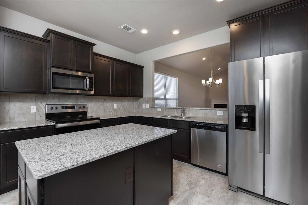 our dream home is waiting for you! No HOA!!! fireplace and a soft neutral color palette create a solid blank canvas for the living area. You'll love cooking in this kitchen, complete with a spacious center island and a sleek backsplash. Relax in your primary suite with a walk-in closet included. The primary bathroom is fully equipped with a separate tub and shower, double sinks, and plenty of under-sink storage. Take it easy in the fenced-in back yard. The covered sitting area makes it great for BBQs! A must see! This home has been virtually staged to illustrate its potential.. Brand New Beautiful 1-story house. Great open floor plan! Spacious open kitchen features an extended island & recessed lighting. Garden tub. Stand-up shower. 2” blinds.