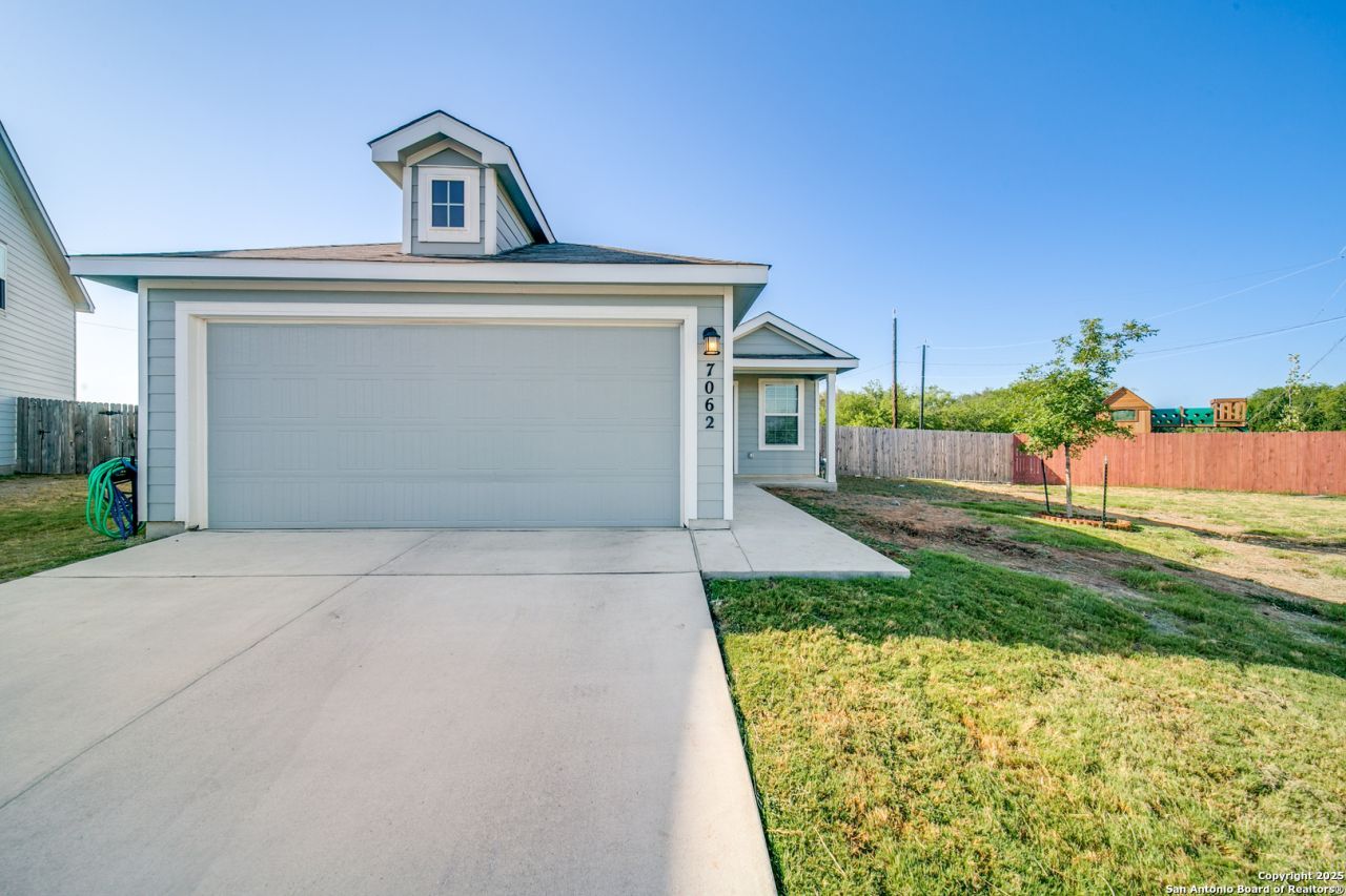 Get ready to jump on this deal yall! Welcome to 7062 Dominic Valley-an inviting 3-bedroom, 2-bath single-story home that offers the perfect mix of comfort, style, and convenience! Located in a fast-growing area of San Antonio, this well-maintained home is move-in ready and loaded with great features. Step inside to a bright, open floor plan with high ceilings, lots of natural light, and a spacious living area that flows right into the kitchen and dining space. The kitchen includes granite countertops, stainless steel appliances, a large island, and a walk-in pantry-perfect for everyday meals or entertaining friends and family. The private primary suite features a roomy bedroom, a double vanity, walk-in shower, and a large walk-in closet. Two additional bedrooms and a full guest bath give you space for kids, guests, or a home office. Enjoy outdoor living on the covered patio, with a low-maintenance backyard thats great for relaxing or having a BBQ. This home is just minutes from Lackland Air Force Base, SeaWorld, Loop 1604, Hwy 90, and plenty of shopping, dining, and schools. Whether youre military, a first-time buyer, or just looking for a great single-story home in a prime location-this one is a must-see! Come take a look at 7062 Dominic Valley and picture yourself at home!