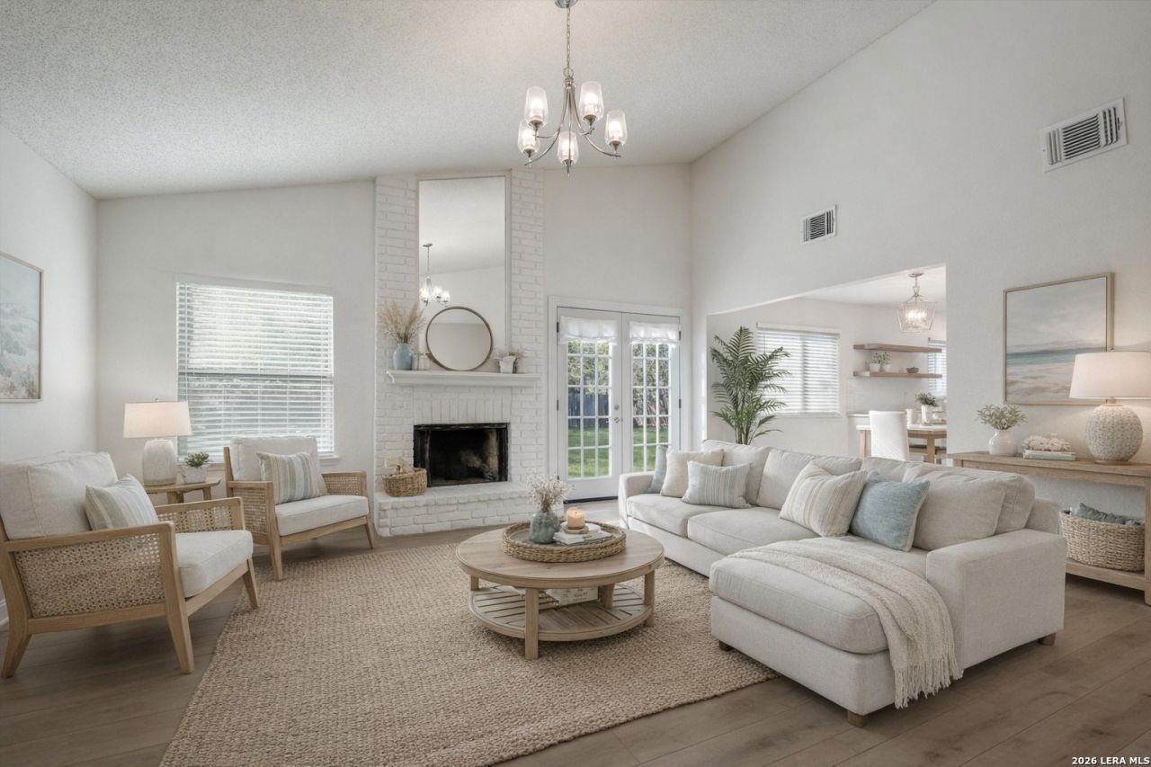 This beautifully updated two-story, 3-bedroom/2.5-bath home offers a warm and inviting atmosphere with new flooring throughout and no carpet. The living room features tall ceilings, abundant natural light, and a striking large brick fireplace as its centerpiece. The home includes numerous stylish and thoughtfully updated fixtures and finishes that add charm and character to every space. All bedrooms are located on the second level, providing privacy and separation from the main living areas. The property also boasts a spacious backyard, perfect for outdoor enjoyment. Located in a vibrant community, residents have access to desirable neighborhood amenities including a clubhouse, pool, playground, jogging trails, basketball court, sports court, and tennis courts. This home blends comfort, style, and convenience in a highly desirable setting.