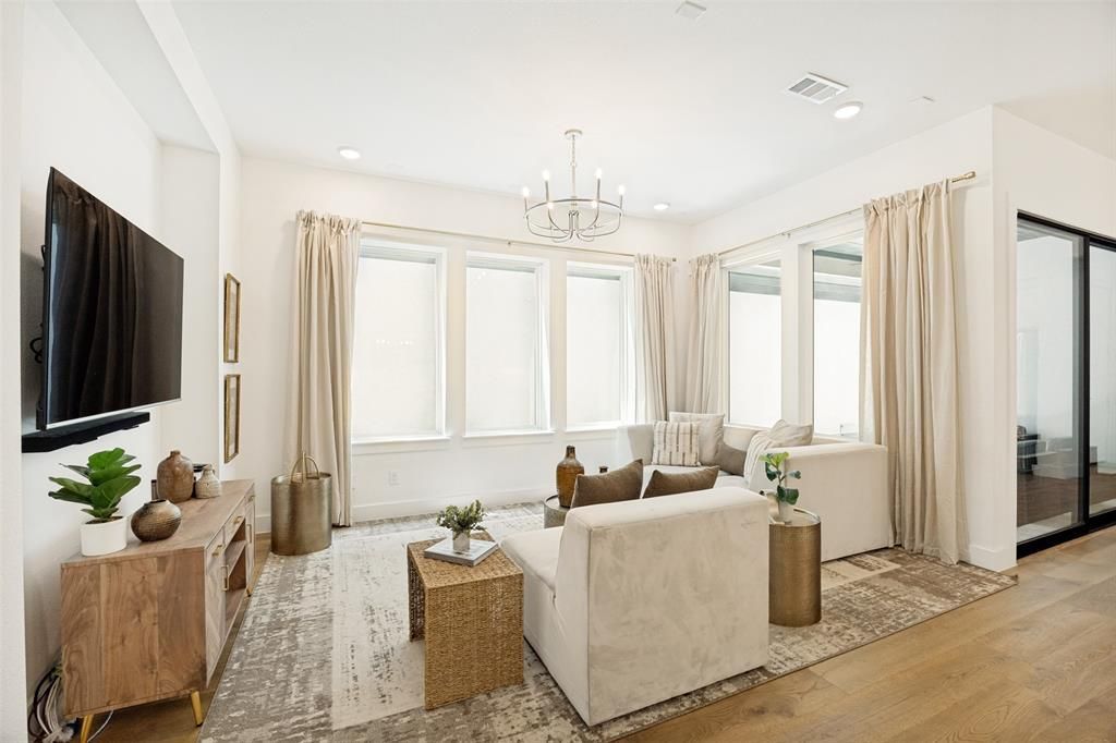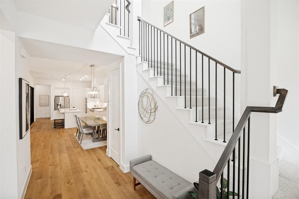 Elevated, modern living in the heart of McKinney. This beautifully designed residence blends clean architectural lines with warm, inviting finishes, creating a space that feels both sophisticated and effortlessly livable. From the moment you step inside, natural light pours through the open-concept layout, highlighting wide-plank wood floors and a seamless flow between living, dining, and kitchen spaces.At the center of the home, the chef-inspired kitchen is a true showpiece—featuring crisp white cabinetry, sleek countertops, high-end appliances, and an oversized island designed for gathering. Whether it’s slow mornings with coffee or hosting friends and family, this space was made to be lived in. The living area offers a cozy yet refined atmosphere, while sliding glass doors open to a covered patio, extending your living space outdoors for relaxed evenings and effortless entertaining.Upstairs, a versatile second living area provides the perfect flex space—ideal for adapting to your lifestyle. The primary suite is a calming escape, filled with natural light and complete with dual vanities and a spa-like walk-in shower designed for everyday comfort. Secondary bedrooms are thoughtfully designed with warmth and flexibility in mind, offering space for guests or personalized use.Ideally positioned with quick access to Sam Rayburn Hwy 121 and the Dallas North Tollway, and just minutes from Frisco, Allen, and Plano. Enjoy premier shopping, dining, and entertainment, with Lifetime Fitness nearby and close proximity to TPC Craig Ranch. Located within acclaimed Allen ISD.Luxury, location, and lifestyle—perfectly aligned.