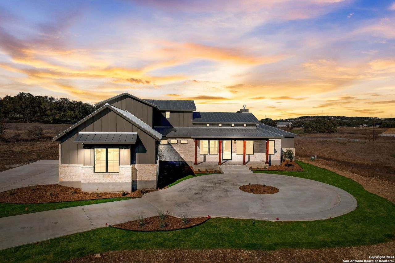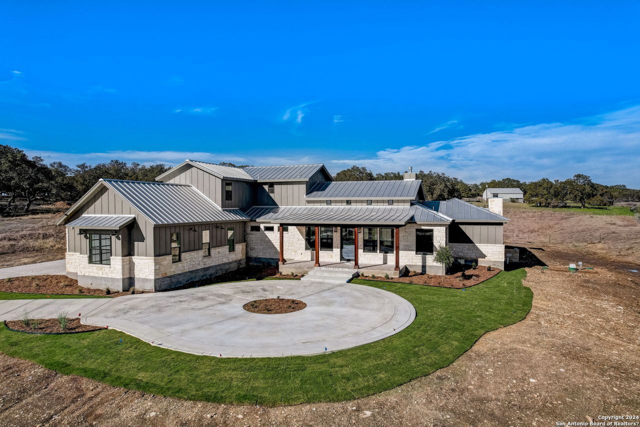 Rented now but available for sale and owner finance- please call to inquire. Absolutely magnificent modern farmhouse sitting on a private 1+ acre lot in beautiful Belle Oaks. Award-winning 2023 Parade of Homes builder and architect! Proudly designed to be Your Home that has it all: luxurious, spacious, comfortable, and beautiful with superior construction and craftsmanship. Home located in front of a private 20+ acre ranch and also surrounded by 5 acres of open space land for the ultimate in privacy and views. The grand wrought iron pivot door is flanked by copper-like natural gas lanterns with herringbone design brick floors of the front patio which continue into the entry hall that open into a magnificent great room with -the heart of a home- stone fireplace from floor to ceiling and a mantel made out of a fallen pecan tree...quality is in the details. Dream Kitchen features custom cabinetry, a full butlers pantry, additional fridge space, and a luxurious Dacor appliance package. Separate breakfast nook with natural light and easy access to patio. Generous covered back patio with a full outdoor kitchen and patio fireplace-perfect for enjoyment. The main floor master suite has its own private patio with its own wood burning fireplace, his and her custom closets, private gym, and its own washer and dryer. European white oak wood floors thru out the entire first and second floor. Large guest suite and separate office located on the main floor. Additional 3 bedrooms and 2 bathrooms, as well as a media/game room are located on 2nd floor. Large utility/mud room off the oversized 3 car garage with insulated glass and aluminum garage doors. Unsurpassed views, well-thought floor plan, generous luminous spaces thru out, top finishes and craftsmanship elevate this modern farmhouse for the ultimate hill country home.