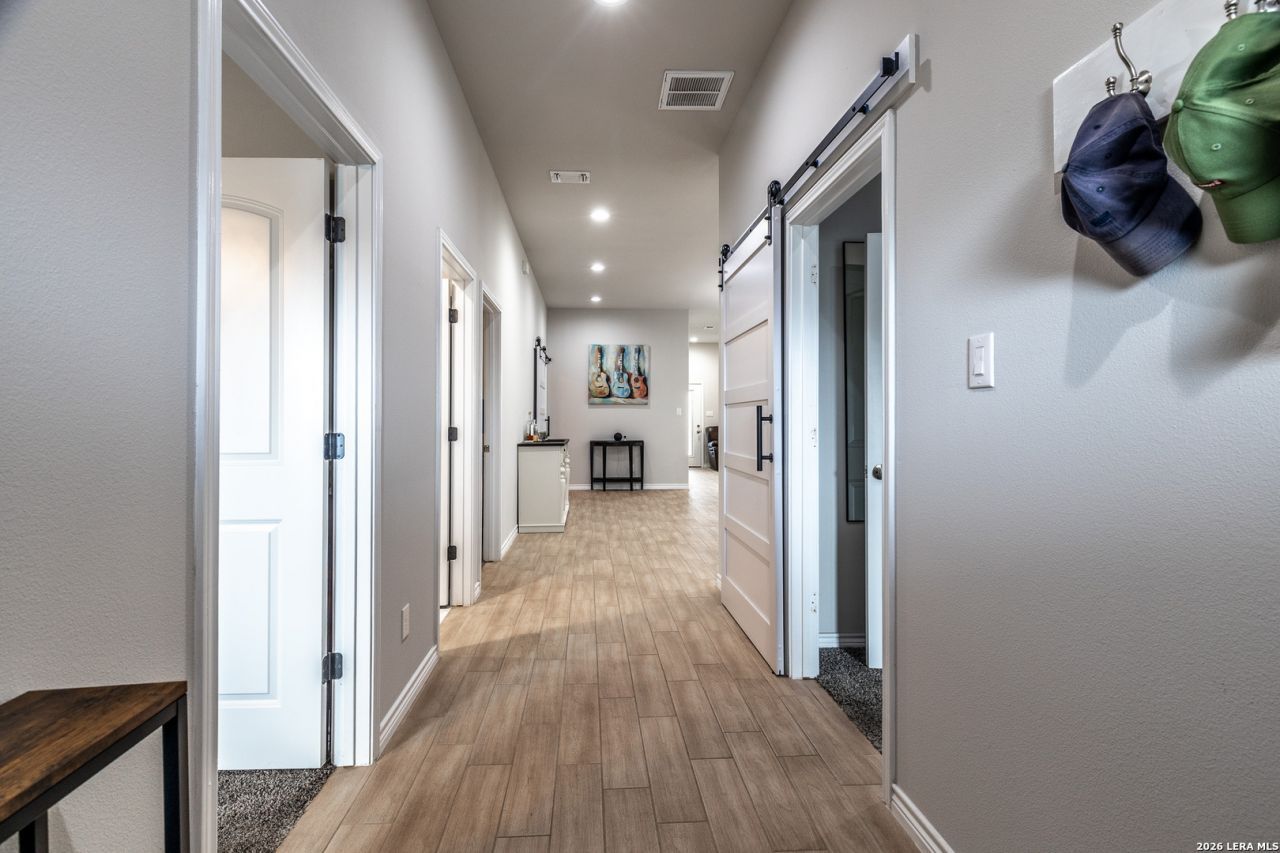 Welcome to 772 Crestview, where designer touches and thoughtful details come together in a home built for both everyday comfort and effortless entertaining. This open concept layout features high ceilings, recessed lighting, and ceiling fans throughout, creating a bright and inviting atmosphere from the moment you walk in. The kitchen is a true centerpiece, complete with granite countertops, 42-inch cabinetry, a classic subway tile backsplash, a farmhouse sink, and a spacious pantry. Stylish barn doors add character and charm, elevating the overall design. The large primary suite offers a relaxing retreat with a spacious walk-in closet and an appointed bathroom designed for comfort and functionality. Secondary bedrooms are generously sized, each featuring ceiling fans and convenient two door closet entries. The oversized laundry room provides ample storage space and direct access to the two-car garage. Ideally located just minutes from shopping, dining, and golf.