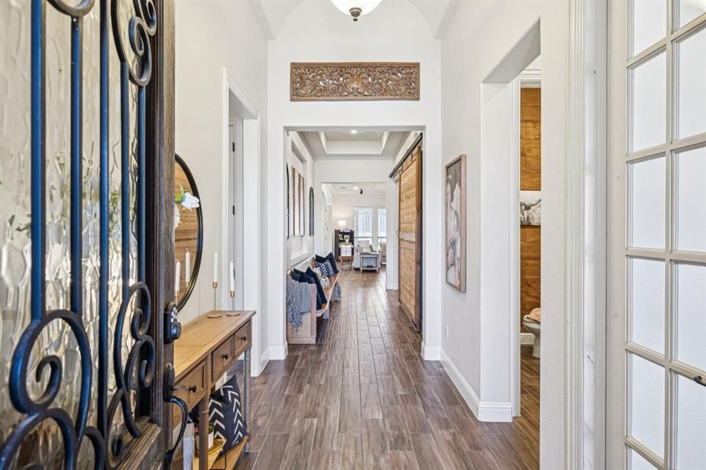 ***SELLER $10,000 CONTRIBUTION*** SEE PRIVATE REMARKS FOR DETAILS! Welcome to this stunning 4-bed, 2-full bath, 1-half bath, 3,072 Sq ft one-story home in the highly sought-after Trinity Falls community. Designed for modern living and entertaining, this home features an open floor plan with abundant natural light, a spacious living area, and thoughtful finishes throughout. The gourmet kitchen is a chef’s dream with knotty alder wood cabinetry, granite countertops, and stainless steel appliances. Enjoy versatile living spaces including a dedicated office and a flex space — perfect for work, play, and everyday life. Relax by the fireplace or step outside to a covered patio ideal for outdoor gatherings.Trinity Falls offers resort-style living with a wealth of amenities. Residents enjoy multiple community pools including a beach-entry pool and splash pads, a state-of-the-art amenity center with fitness facilities, co-working spaces, and extensive hike-and-bike trails weaving through parks and natural green space. The community also features playgrounds, picnic areas, a dog park, 18-hole disc golf course, and over 450 acres of open space. With an active lifestyle calendar and events for all ages, this neighborhood blends nature, recreation, and community living just minutes from shopping, dining, and major highways.