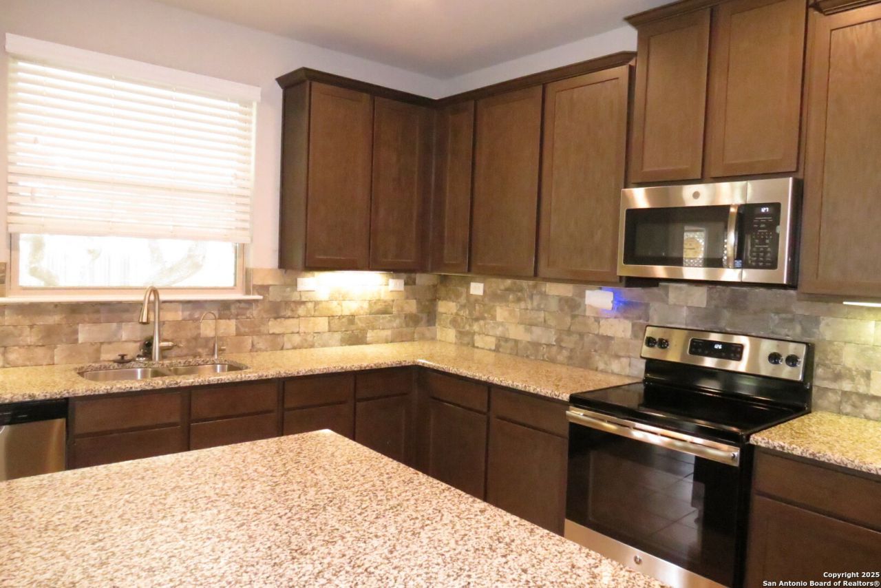 Welcome to this beautiful 3 bed 2.5 bath two-story home boasting 2186 square feet per BCAD. You will find a large kitchen, open to the breakfast and family room looking out to a covered patio and beautifully treed backyard. Head upstairs to the multipurpose loft, workout room, game room or second living. A large master bedroom accompanies the upstairs, along with two bedrooms and full bath. Master bath has a double vanity along with a large shower. Closet is huge. The laundry is conveniently located upstairs near bedrooms in its own large room. Conveniently located near Alamo Ranch shopping, restaurants, and less than a mile to highway 211 for easier commutes. Dont miss the opportunity to come see this beauty before its gone! Friendly, community with a pool, park, and jogging trails.