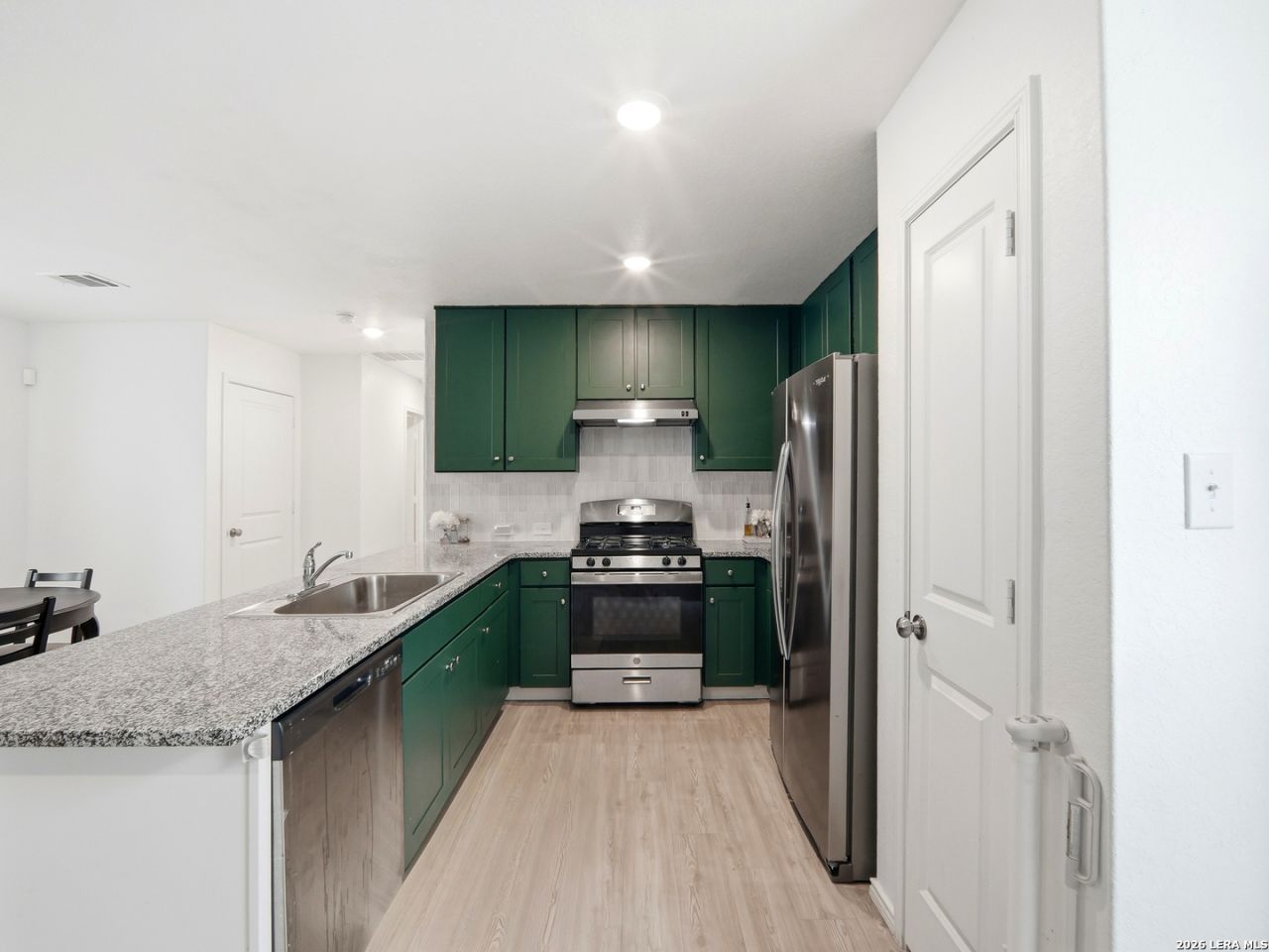 This well-maintained home at 8027 Serro Medina offers a rare opportunity with a Low Assumable interest rate to qualifying buyers. This home features a modern exterior, two-car garage, and a bright, open-concept layout with durable vinyl plank flooring and neutral finishes throughout. The kitchen is designed for both function and style, with custom-painted cabinetry, granite countertops, stylish backsplash, stainless steel appliances, and a spacious island. The primary suite provides a walk-in closet and en-suite bath, while two additional bedrooms offer flexibility for guests, work, or everyday living. Enjoy a fully fenced backyard, tankless water heater, and energy-efficient features throughout.