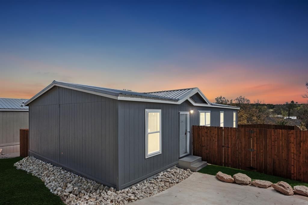 Brand new doublewide manufactured home located in the community of Comanche Cove! 28 foot wide X 48 foot long Champion home built local in Burleson, Texas. Featuring 1344 square feet, 3 bedrooms and 2 baths. This new home has so much to offer! Located far off the road down a hill for the ultimate in privacy! Spectacular view of Comanche Peak from your front door. Full concrete driveway, fully fenced back and side yard with pre stained cedar privacy fencing. Sod front and back yard, front and back decks, hardi board siding, hardi board skirting, and a FULL METAL ROOF! Brand new aerobic drip system septic system installed. So, let's talk about the inside of this new home! Laminate wood flooring throughout with NO carpet! Double pane storm windows throughout, textured ceilings throughout, overhead air vents throughout! Kitchen includes all appliances. Refrigerator, stove, and dishwasher. Full size and separate utility room just off the kitchen and breakfast area. Large and open living room with plenty of windows allowing ample natural lighting inside the home. Large master bedroom with walk in closet. Ensuite master bathroom with double sinks and a large separate walk in shower. Bedrooms 2 and 3 are split bedrooms with walk in closets. Full 2 year warranty included with purchase. Comanche Cove offers a clubhouse, community pool, park, and Lake Granbury access. This new doublewide manufactured home has so much to offer its new owner. A must see home!