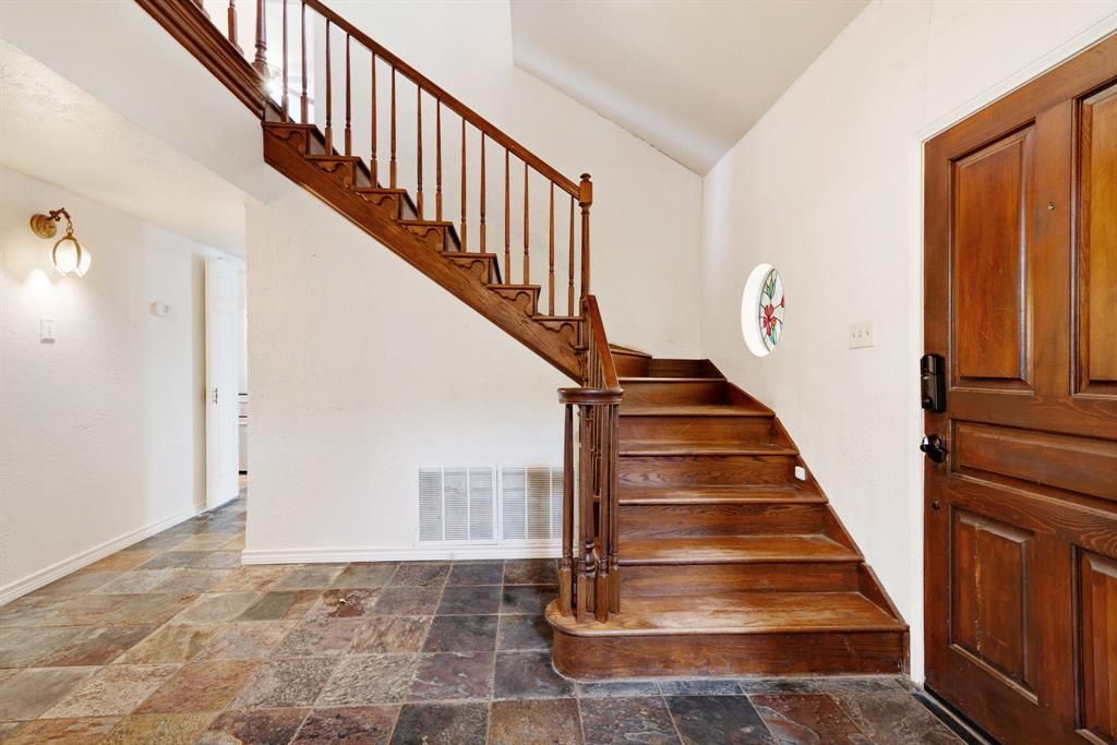 Located in Morningside Addition, this spacious 4-bedroom, 3-bathroom home offers 2,601 square feet of comfortable living with a timeless layout and inviting architectural detailsA beautiful entry greets you upon arrival, featuring an original wood staircase and an open view to the second story, creating a warm and impressive first impression. The spacious living area is highlighted by vaulted ceilings and a wood-burning fireplace, offering both character and functionality for everyday living or entertaining.The large primary suite is conveniently located on the first floor and features sliding glass doors that open to the backyard, a generous walk-in closet with a utility area, and easy access for added privacy and convenience. An additional bedroom and full bathroom are also located on the main floor.Upstairs, you’ll find two more bedrooms and two bathrooms, providing ample space for family, guests, or flexible use.The fenced backyard includes a covered deck ideal for outdoor gatherings or relaxing evenings. A detached carport and separate storage building add extra convenience and storage options.This well-designed home combines space, character, and practicality in one of the area’s most established neighborhoods.