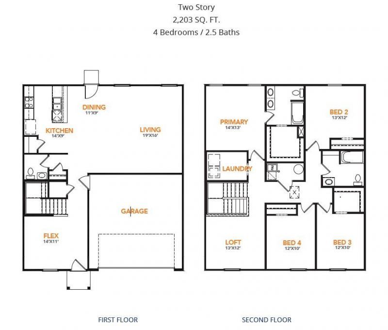 MLS# 21250531 - Built by NHC - Aug 2026 completion! ~ Model 2203 B1 - Harrison The Harrison Plan from our Liberty Series offers a perfect blend of comfort, practicality, and exceptional value. This 2-story home features 4 bedrooms, 2.5 bathrooms, a 2-car garage, and 2,203 square feet of thoughtfully designed living space. As you step inside, you’ll pass the versatile flex room before reaching the staircase to the upper level, a convenient closet, and half bathroom. The heart of the home is the open kitchen and living area, complete with a central island, a dining area, and a spacious family room — perfect for entertaining or relaxing with loved ones. Upstairs, the private primary suite awaits, featuring an en suite bathroom. Three additional bedrooms, one more full bathroom, a loft area for additional living space, and a convenient laundry room complete the upper level.