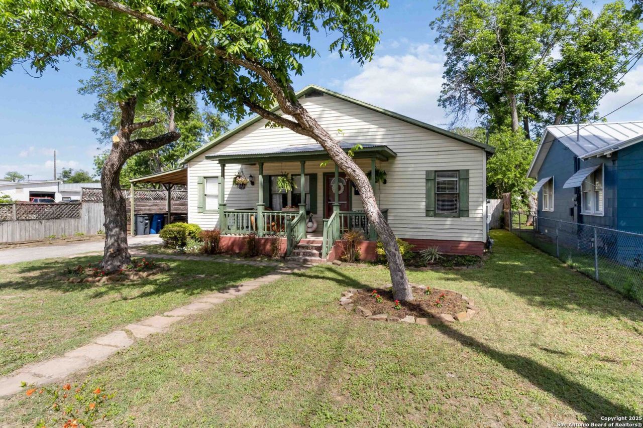 CHARMING 3-BEDROOM HOME IN COVETED NEW BRAUNFELS LOCATION! Welcome to 1444 sq ft. of charm and possibility, nestled on the west side of I-35-just minutes away from the heart of New Braunfels and the up-and-coming Historic Mill District. This 3-bedroom, 2 bath home features a spacious kitchen and living area, perfect for everyday life or entertaining a crowd. Step outside to your fully fenced backyard, shaded by mature pecan trees and a producing fig tree (yes, really). Its a little backyard haven with room to run, garden or simply enjoy. The home could use a few updates-particularly the windows-but we have priced it with that in mind. HVAC unit was replaced in 2020.This is more than a house. Its a sweet spot to build your next chapter in a neighborhood thats quietly becoming one of the more desirable areas in NB. Whether youre looking to nest, invest or both, this ones worth a look. All this and less than 1/4 mile from the Faust St Bridge, Guadalupe River Access and IH35 N. New River Mill Development is right down the street.