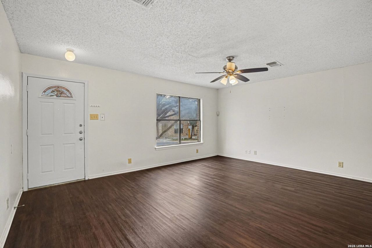 Move-in ready and spacious, this three-bedroom, 2.5-bathroom home offers an ideal blend of comfort and convenience in San Antonio. The home features an open-concept layout with high ceilings and abundant natural light, creating a bright and airy atmosphere. The large kitchen provides ample storage and flows seamlessly into a cozy living area, making it perfect for both daily living and entertaining. Outside, the serene backyard serves as a private retreat. Ideally located in a quiet neighborhood, this home offers quick access to Loop 410, USAA, and UT Health San Antonio. It is also situated within the highly-regarded Northside Independent School District. Dont miss this move-in-ready gem, schedule your showing today!