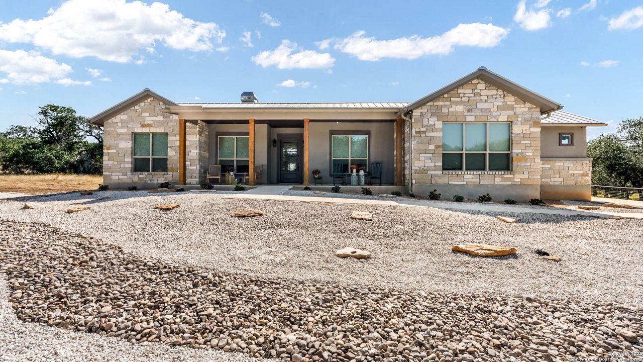 Youll love this beautiful one-story home with an oversized workshop in the desirable community of Belle Oaks Ranch in Bulverde, TX. This 3 bedroom, 2.5 bath homes sits on 1.39 acres. You walk into a spacious open floor plan that includes an island kitchen with quartz countertops, double ovens, and stainless steel appliances. You have a formal dining room and office. The primary suite is tucked away, adding a sense of privacy from the rest of the home. In the primary bath, youll find a large walk-in closet, double vanities, a gorgeous tub, and a large walk-in shower! It is a dream! You wont want to leave your suite! The other two bedrooms are separated by a Jack and Jill bathroom with a shower/tub combo and double vanities. Youll want to spend your evenings out on the back porch enjoying the peace and quiet of the hill country! The home does have an attached 3-car garage plus a large 1,020 sq ft workshop out back! Belle Oaks is a gated community with amazing amenities to include a large pool, a clubhouse, tennis and pickleball courts, a playground, and a basketball court. It is zoned to the Comal School District.