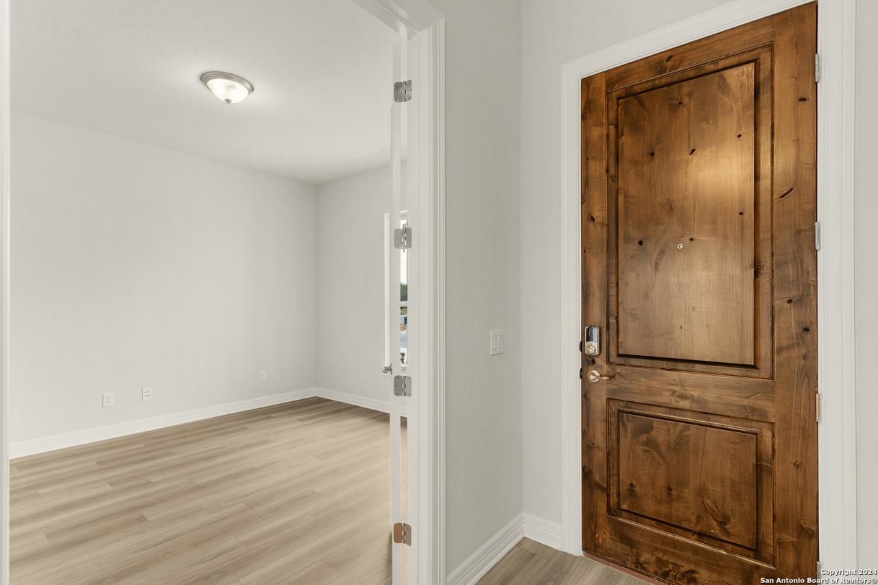 LIMITED TIME OFFER 4.49 Fixed Interest Rate for Qualified Buyers - (4.512 APR) Nolte Farms, a new vision of "community" where small-town charm meets modern luxury comforts. Located in Seguin, TX, 35 miles east of San Antonio, Explore the seamless blend of historic legacy & laid-back living at Nolte Farms, a new perspective on community where neighbors become friends & home is paradise. This humble abode offers a picturesque atmosphere near the Guadalupe River where you can enjoy peaceful strolls, remarkable sunsets & timeless memories. With its sleek, modern exterior, this home brings curb appeal to a new level. The foyer welcomes you in with its tray ceiling feature, leading you into the entertainers dream kitchen. A chimney hood and double ovens are but a few of the perks this kitchen features. Cabinetry is nestled into every nook and cranny in this home, giving generous storage opportunity without the eye sore. Rest easy if you have visitors, pets or little ones roaming this home, without a fiber of carpet in it - cleanliness is a breeze! The Great Room presents a gas fireplace with sophisticated ledgestone surround and a cedar mantel, as well as large slider doors that bring you out into the serenity of the large covered patio. No expense was spared in this homes design, from its quartz countertops in the Master Bathroom and Kitchen, to its keyless entry front door - theres something in this home for everyone to love.