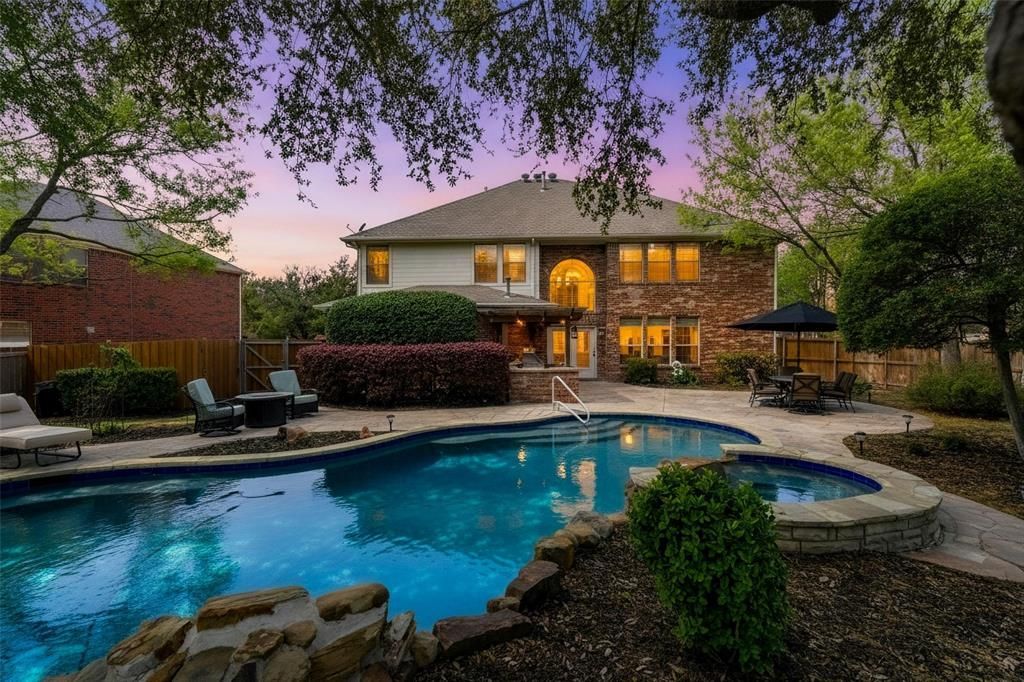 WOW! Welcome to Waterview's gated golf course community. This gorgeous and updated 5 bedroom gem in Rowlett is turnkey ready for your picky buyers! Not only the spacious and sprawling primary suite, but each bedroom has its own walk in closet. The chefs kitchen boasts a walk in pantry, double ovens, and a Bosch dishwasher. Lovely new hardwood floors flow through this open and practical floor plan. Two Ecobee wifi thermostats keep you comfortable inside, while outside you will enjoy your own beautiful and private oasis. A heated diving pool with a waterfall feature and separate spa, provide year round spectacular outdoor living. Plenty of room for poolside seating and laying out, or cooking on the built in grill, while still having a large backyard of sprinkler system maintained lush grass for children and pets alike to enjoy. This home is an entertainer's dream. A three car garage offers the flexibility and space many are seeking. You'll have access to the city run golf course. Swimming pool and waterslides. Parks, playgrounds, fishing ponds. And 2 pickle ball or tennis courts as well! Come see this today!