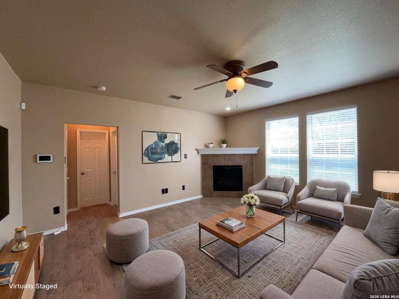 Step into comfort and versatility with this beautifully designed 5-bedroom, 3-bath home that offers the perfect blend of style and functionality. From the moment you enter, youll appreciate the inviting layout, featuring ceramic tile and vinyl flooring, high ceilings and two spacious living areas ideal for relaxing or entertaining. A dedicated office or studio provides a flexible space for remote work, creative pursuits, or quiet retreat. The home is equipped with modern conveniences including an alarm system, carbon monoxide detector, fireplace and HVAC with a programmable thermostat to keep you comfortable year-round. The kitchen is thoughtfully appointed for both everyday living and hosting, complete with an island, eat-in dining area, electric glass cooktop stove, dishwasher, microwave, and refrigerator, everything you need right at your fingertips. The primary suite offers a private escape with a well-appointed ensuite featuring a double vanity, garden tub with whirlpool, walk-in shower and a spacious walk-in closet. Step outside to enjoy a fully fenced backyard designed for relaxation and privacy, featuring a covered patio, mature trees, sprinkler system and gutters. A 2-car garage with door opener adds convenience and extra storage. Located on a desirable corner lot, this home also provides access to community amenities including a barbecue area, basketball court, pavilion, picnic areas, playground, and nearby shopping. This is a place where comfort, space, and convenience come together, ready to welcome you home. "*Our award winning Resident Benefits Package (RBP) required program includes Liability Insurance, Pest Control, Monthly Air Filter Delivery, Move-in Concierge (utilities/cable/internet), Credit Building, Resident Rewards, Identity Fraud Protection and more for only $65/mo. *If you provide your own insurance policy, the RBP cost will be reduced. Optional Premium Upgrades Available as well, More details in application. *PET APPS $30 with credit card/debit payment per profile or $25 by ACH per profile. High-Speed Internet Connectivity Made Simple: This property Now includes Group Rate 1Gig Internet (GRI) for just $69.50 per month - providing fast, reliable service at a low flat rate. With GRI, residents enjoy: -1 Gig high-speed internet -No data caps -All required equipment included -Ongoing technical support. Premium amenity for your home, providing seamless connectivity. no surprise equipment fees, and no long-term contracts to manage. All information in this marketing material is deemed reliable but is not guaranteed. Prospective tenants are advised to independently verify all information, including property features, availability, and lease terms, to their satisfaction. *some marketing photos may be virtually staged images*"