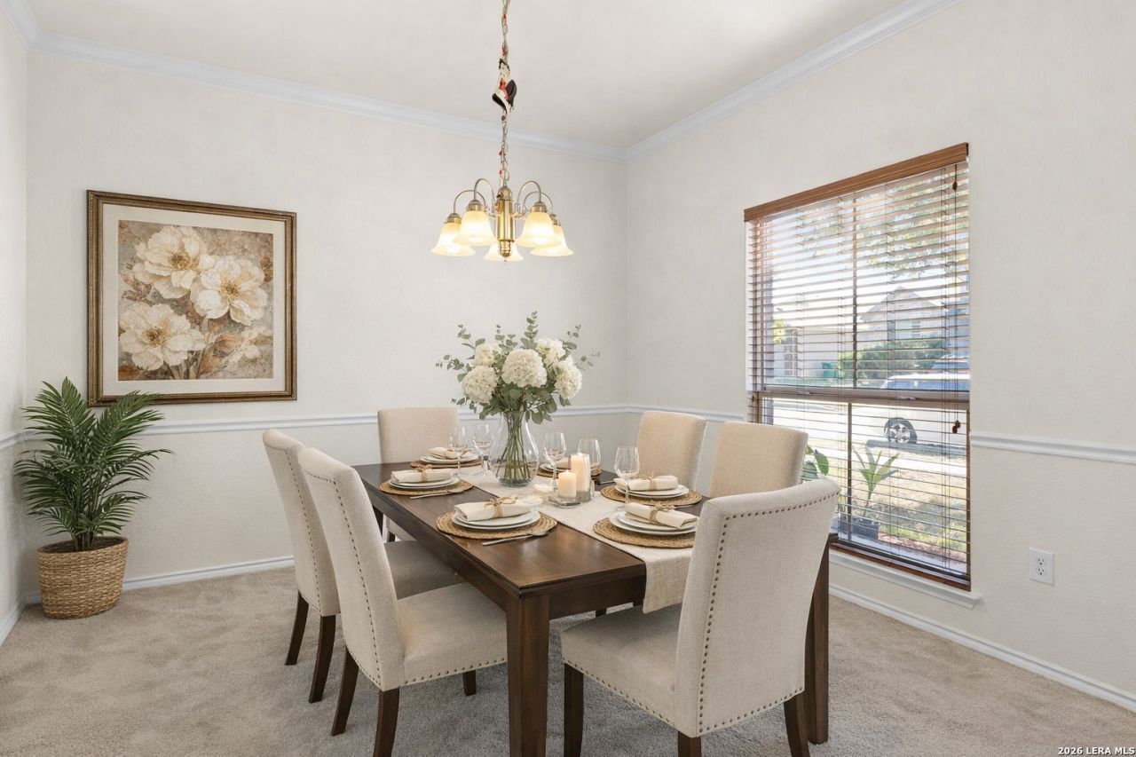 Welcome to 9914 Meadow Lark in Converse, Texas, a spacious and versatile 5-bedroom, 4.5-bath home offering 3,640 square feet of thoughtfully designed living space in the established Rolling Creek community. Ideally located just minutes from Loop 1604, Loop 410, Randolph Air Force Base, and Fort Sam Houston, this home is perfectly positioned for military families, relocation buyers, and multi-generational living. Inside, the home offers a flexible layout designed to accommodate both everyday comfort and entertaining. The main floor features a private office, ideal for working from home, along with both a formal dining room and a bright breakfast area, giving you multiple spaces for gatherings and daily living. The downstairs living room is anchored by a cozy fireplace, creating a welcoming space to relax or host guests. The primary suite on the main level provides privacy and convenience, complete with its own en-suite bathroom. Upstairs, the home continues to impress with a second primary suite with en-suite bath, making it an excellent option for multi-generational households, extended guests, or older children wanting their own space. An additional guest suite with its own bathroom ensures comfort for visitors. A large upstairs flex space provides incredible versatility and can easily function as a game room, media room, second living area, or playroom, depending on your needs. Outside, enjoy the charm of a covered front porch and balcony, perfect for relaxing mornings or unwinding in the evening. The new roof adds peace of mind, while the homes location provides convenient access to major highways, shopping, dining, and military installations throughout the San Antonio metro area. With its generous square footage, flexible floor plan, and prime location near Randolph AFB and Fort Sam, this Converse home offers the space and functionality todays buyers are looking for.